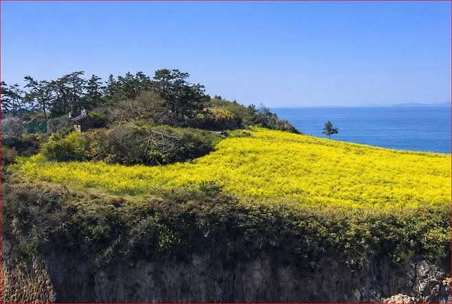 🌼 노란 물결이 일렁이는 절벽 위 유채꽃밭