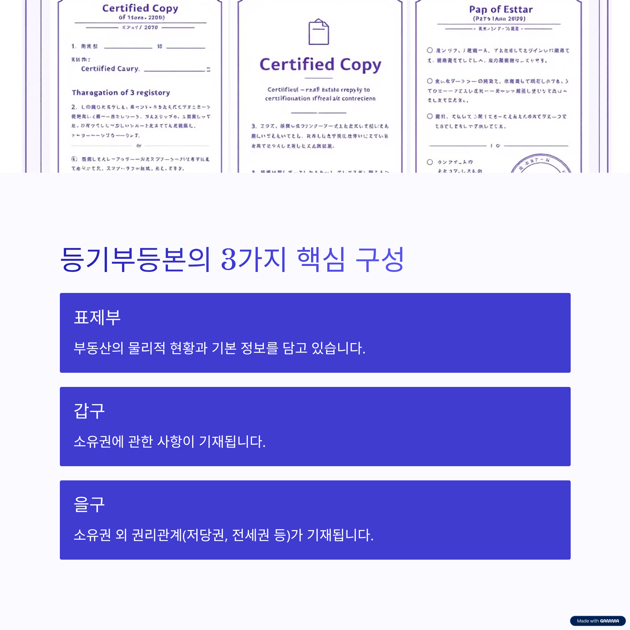 특히 등기부등본은 '표제부, 갑구, 을구'로 나뉘는데,